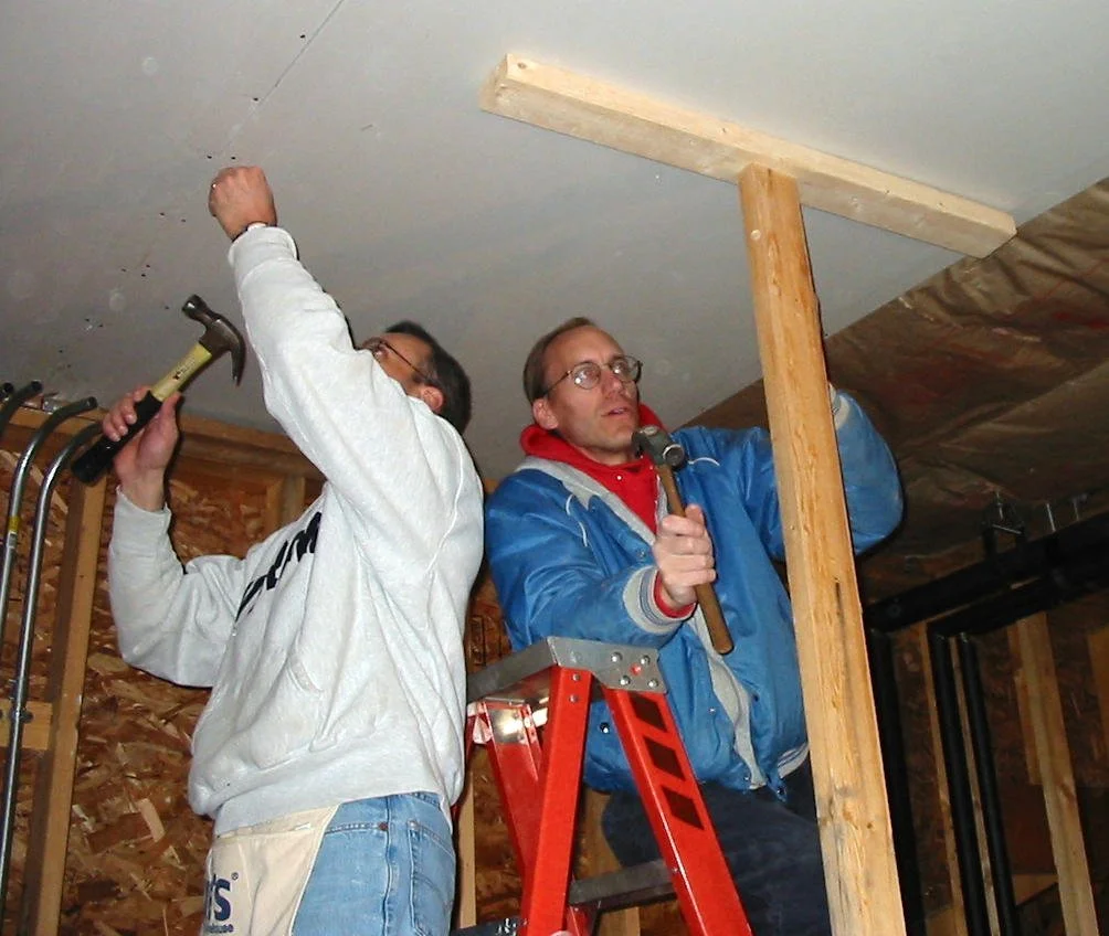 Inside the church the transformation was dramatic as wallboard was put up. Our members put up the wallboard in the nonpublic areas, such as attic and utility room. A professional crew put up the wallboard in the public areas. The insulation work was also completed.