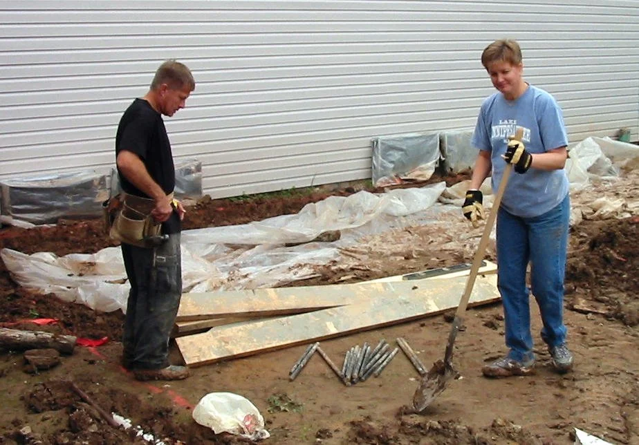 In November the parking lot was graded and the two islands built. Hanging the vinyl siding was competed. Concrete pads were put in for the HVAC units.